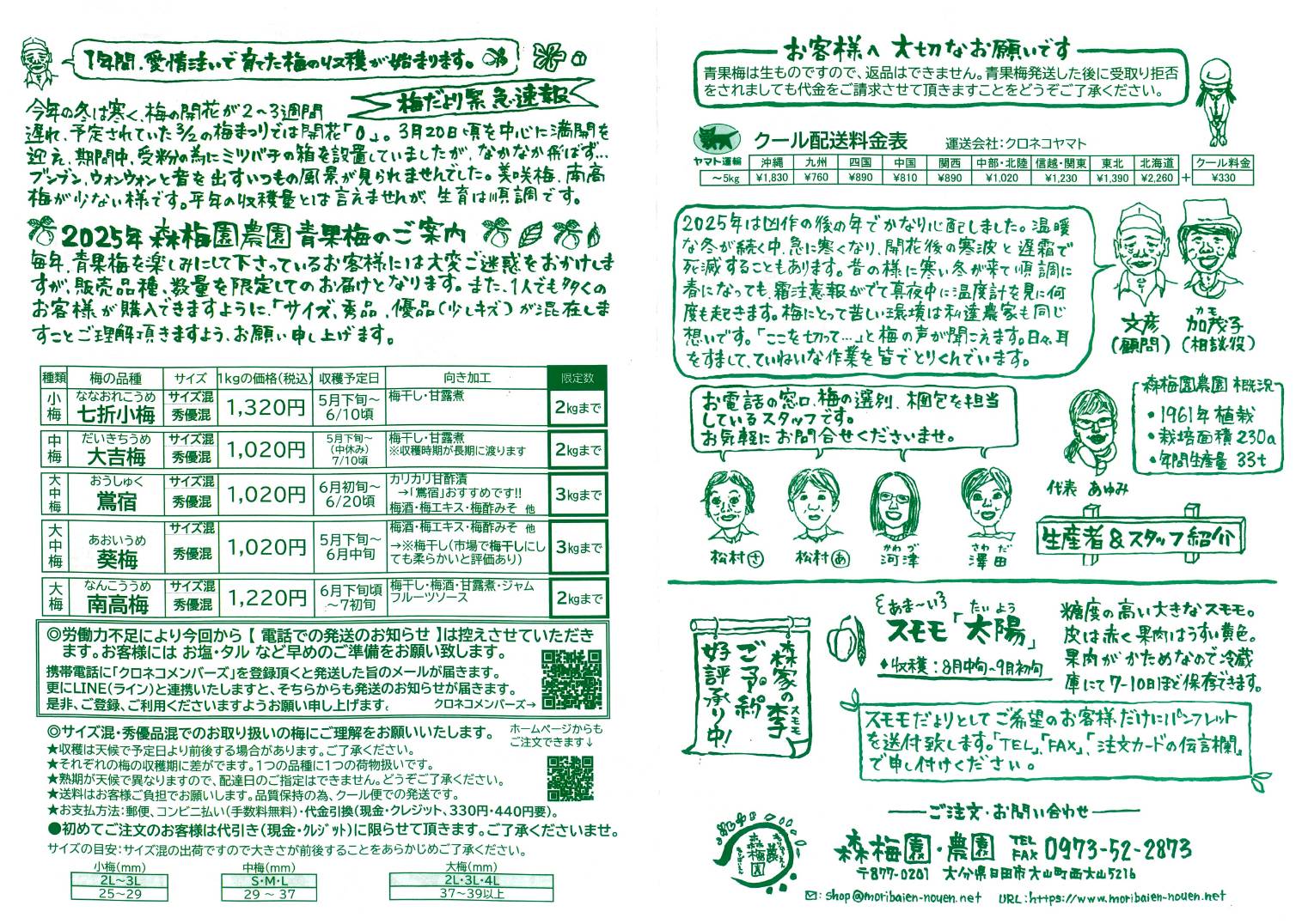 毎年、青果梅を楽しみにしてくださっているお客様には大変ご迷惑をおかけしますが、2025年は販売品種、数量を限定しての販売となります。